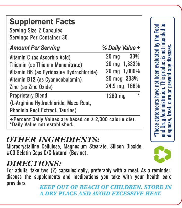 Arginine Complex Capsule (Supports Testosterone Levels, Libido, Men's Health), USA, FDA, GMP, NPAC-60 Capsules